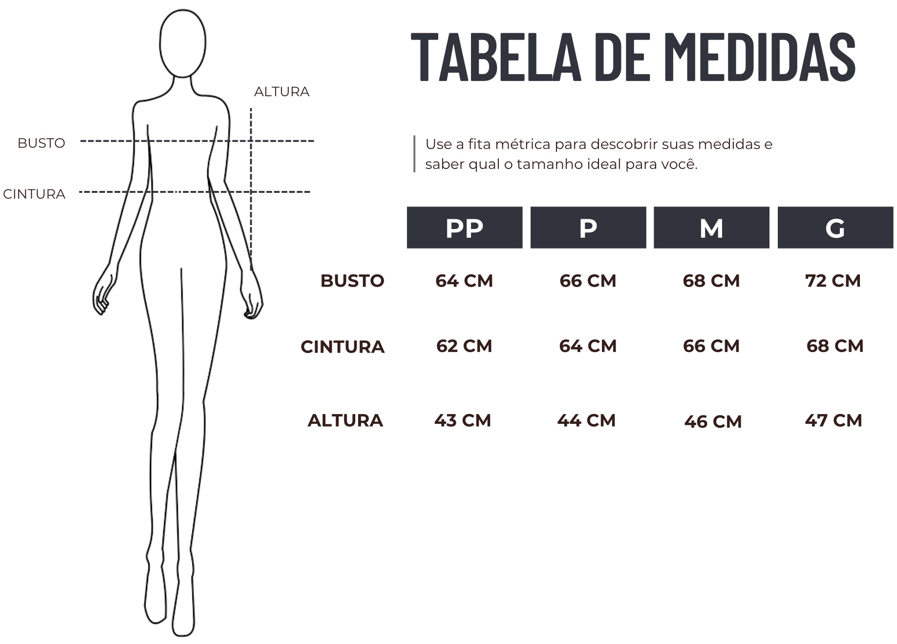 Medidas: modelo veste P, tem 1,75 m de altura, 87 cm de busto, 70 cm de cintura e 94 cm de quadril.