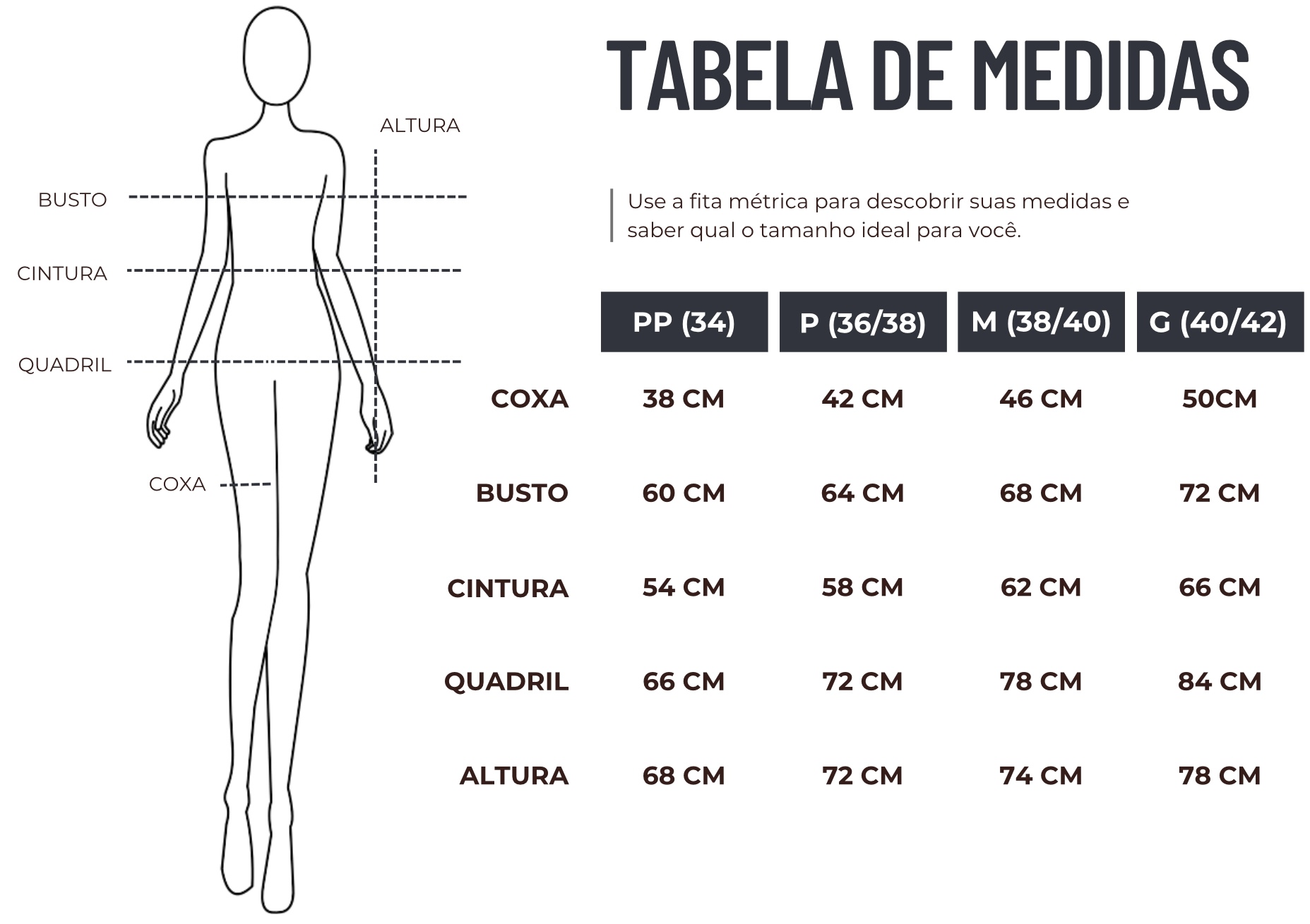 Medidas: modelo veste P, tem 1,75 m de altura, 87 cm de busto, 70 cm de cintura e 94 cm de quadril.