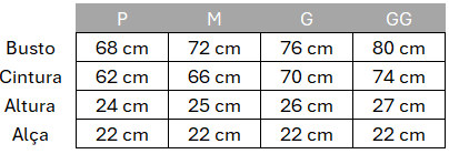 Para a escolha do tamanho ideal, verificar a tabela de medidas abaixo: